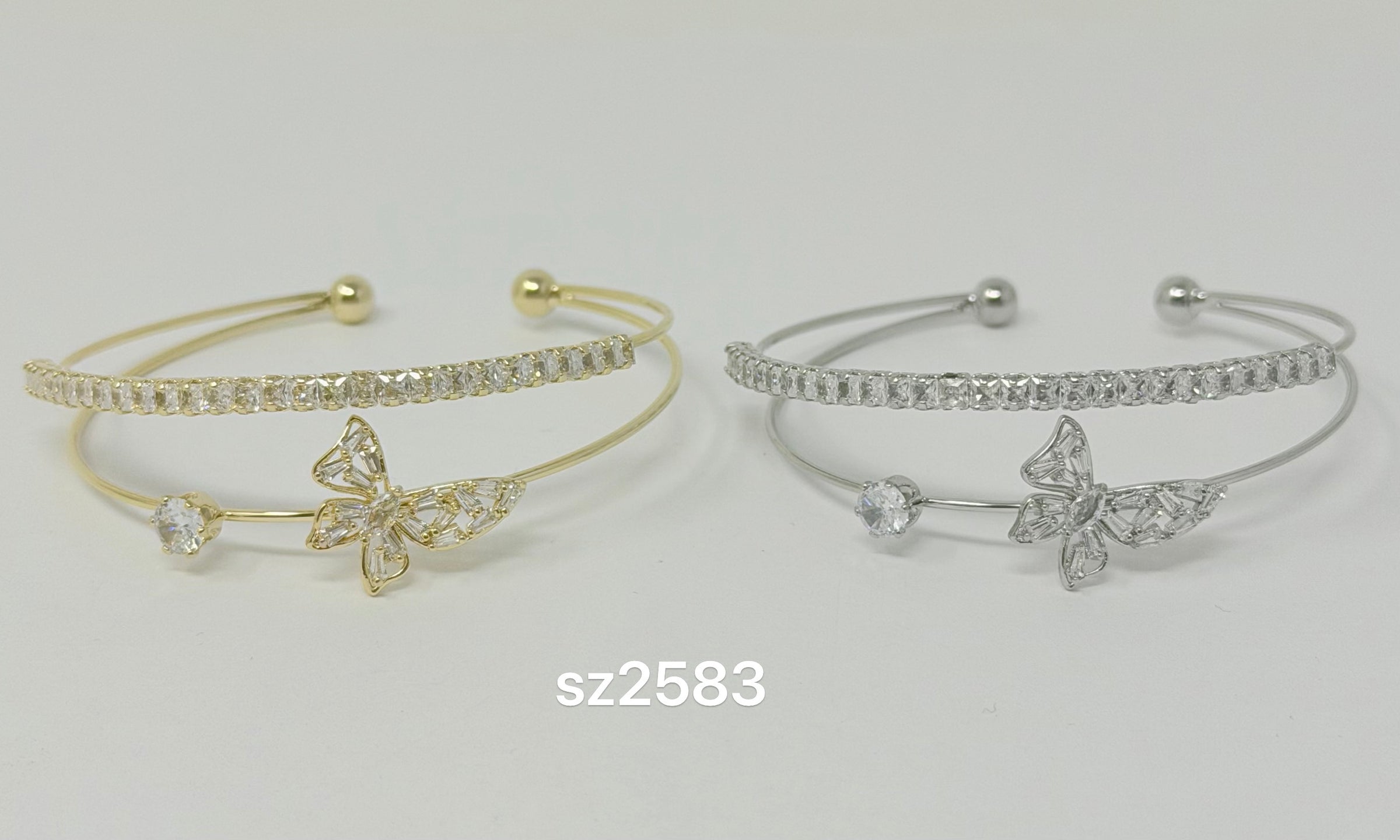 Butterfly Double Layer C.Z Rhodium Plated Cuff bracelet