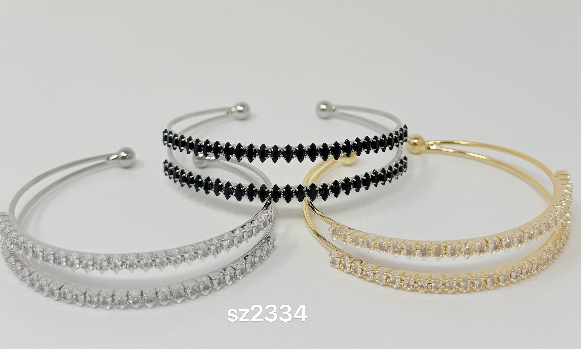 Double Layer C.Z Rhodium Plated Cuff bracelet