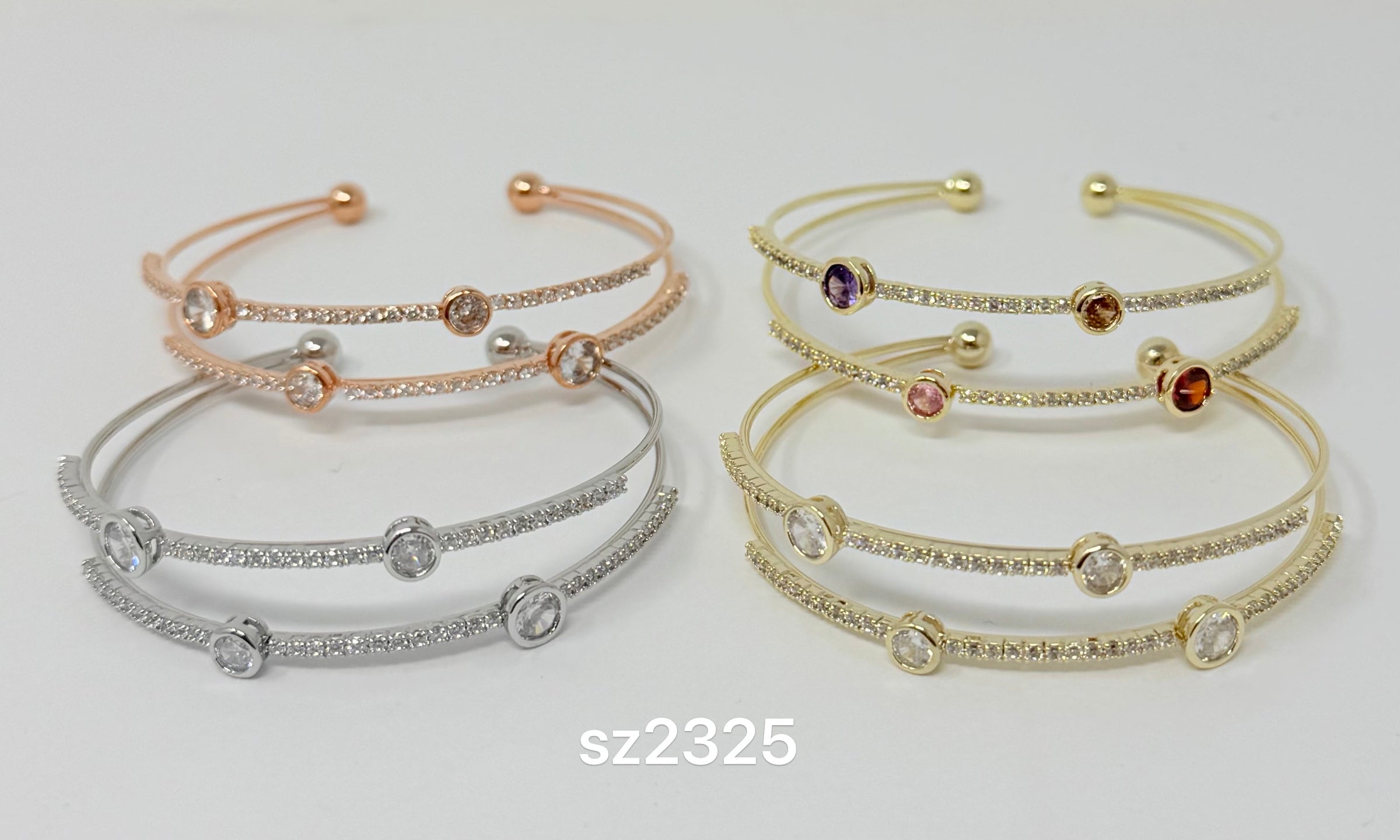 Double Layer Open C.Z Rhodium Plated Cuff bracelet