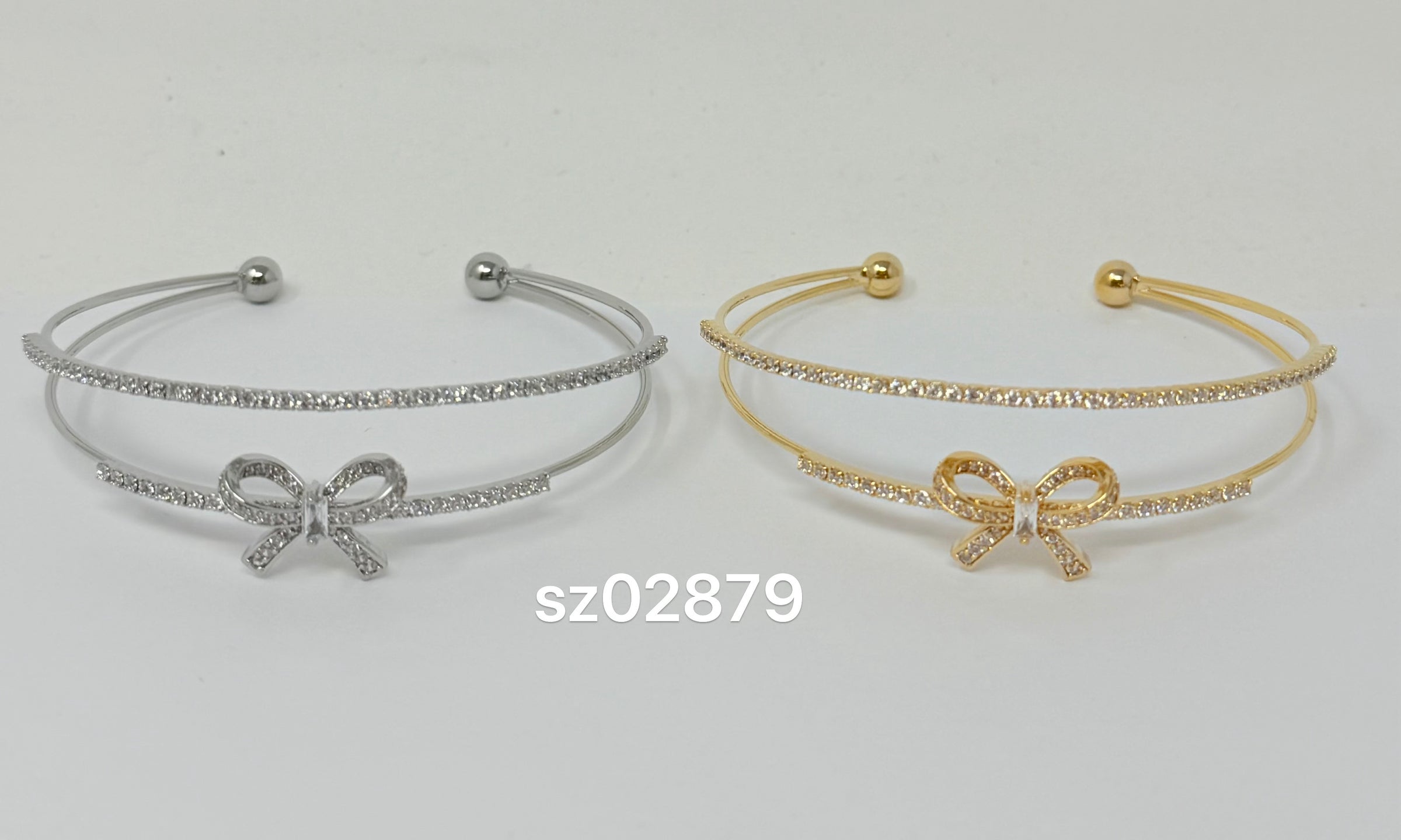 "Bow" C.Z Rhodium Plated Cuff bracelet