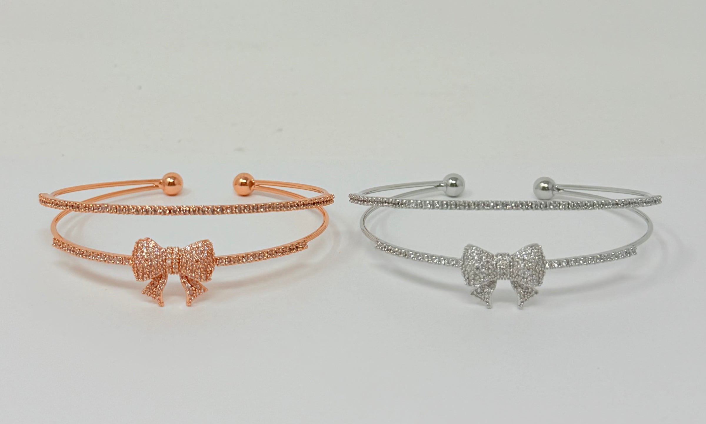 "Bow" C.Z Rhodium Plated Cuff bracelet