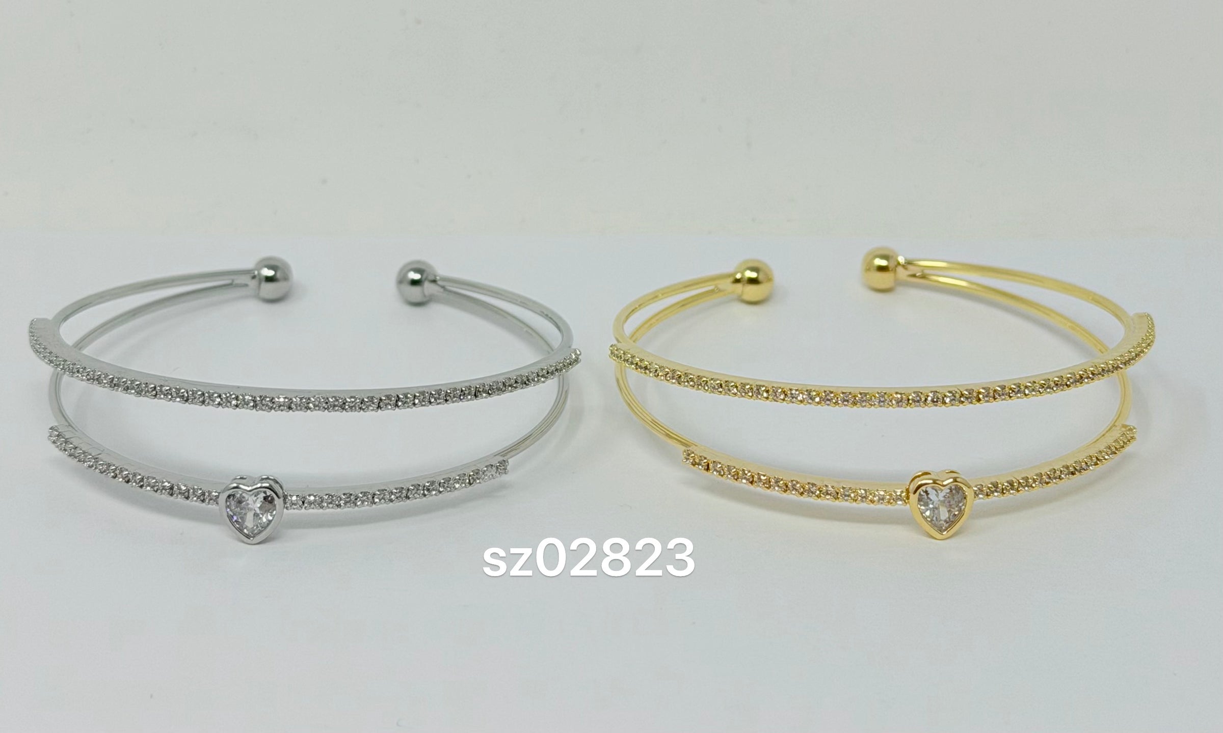 CZ Heart Double Row Cuff Bracelet – Gold & Silver