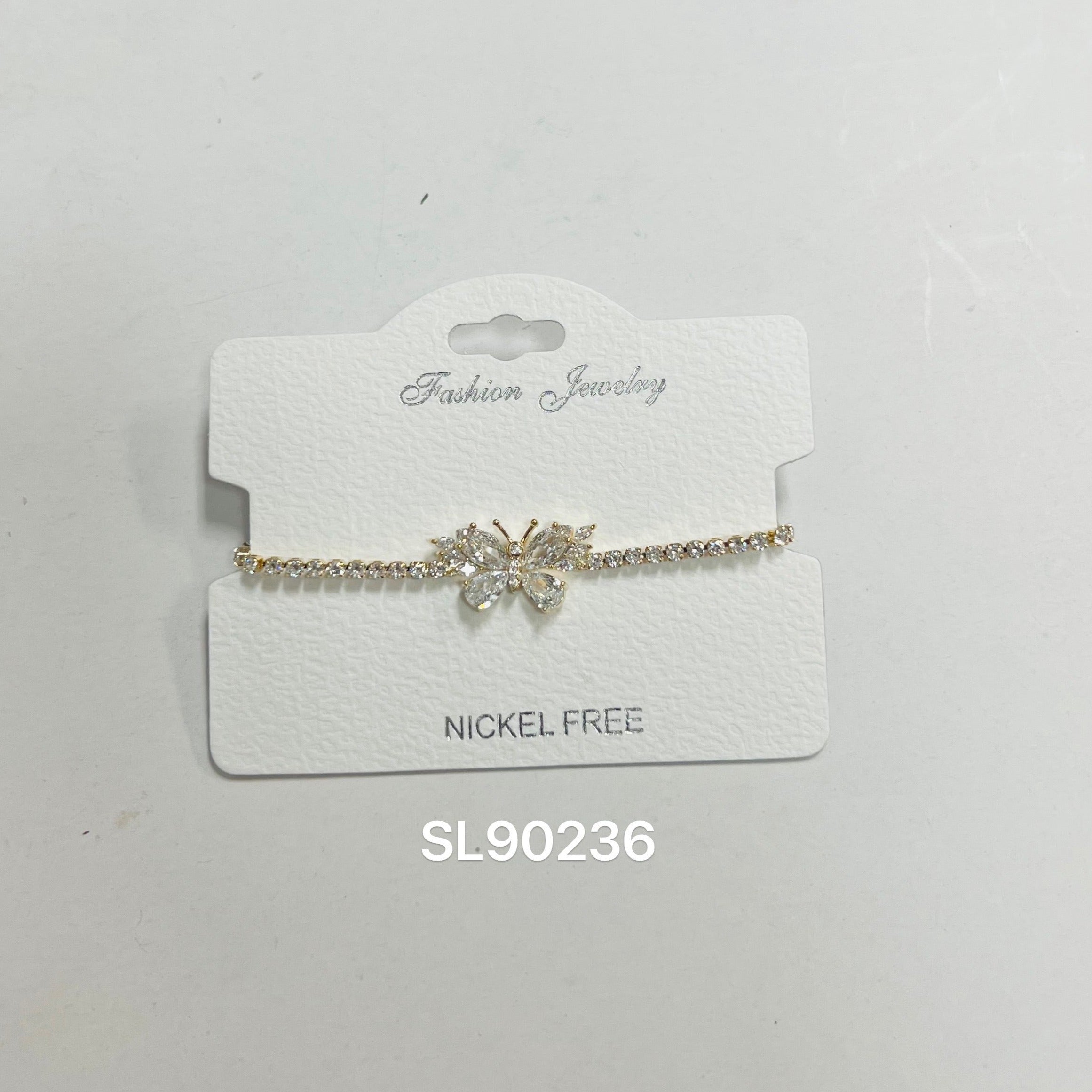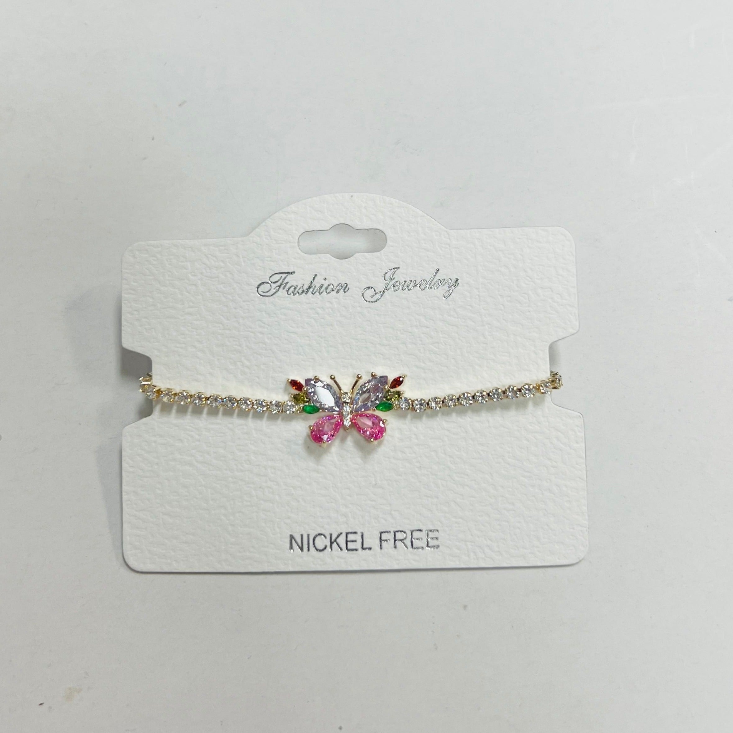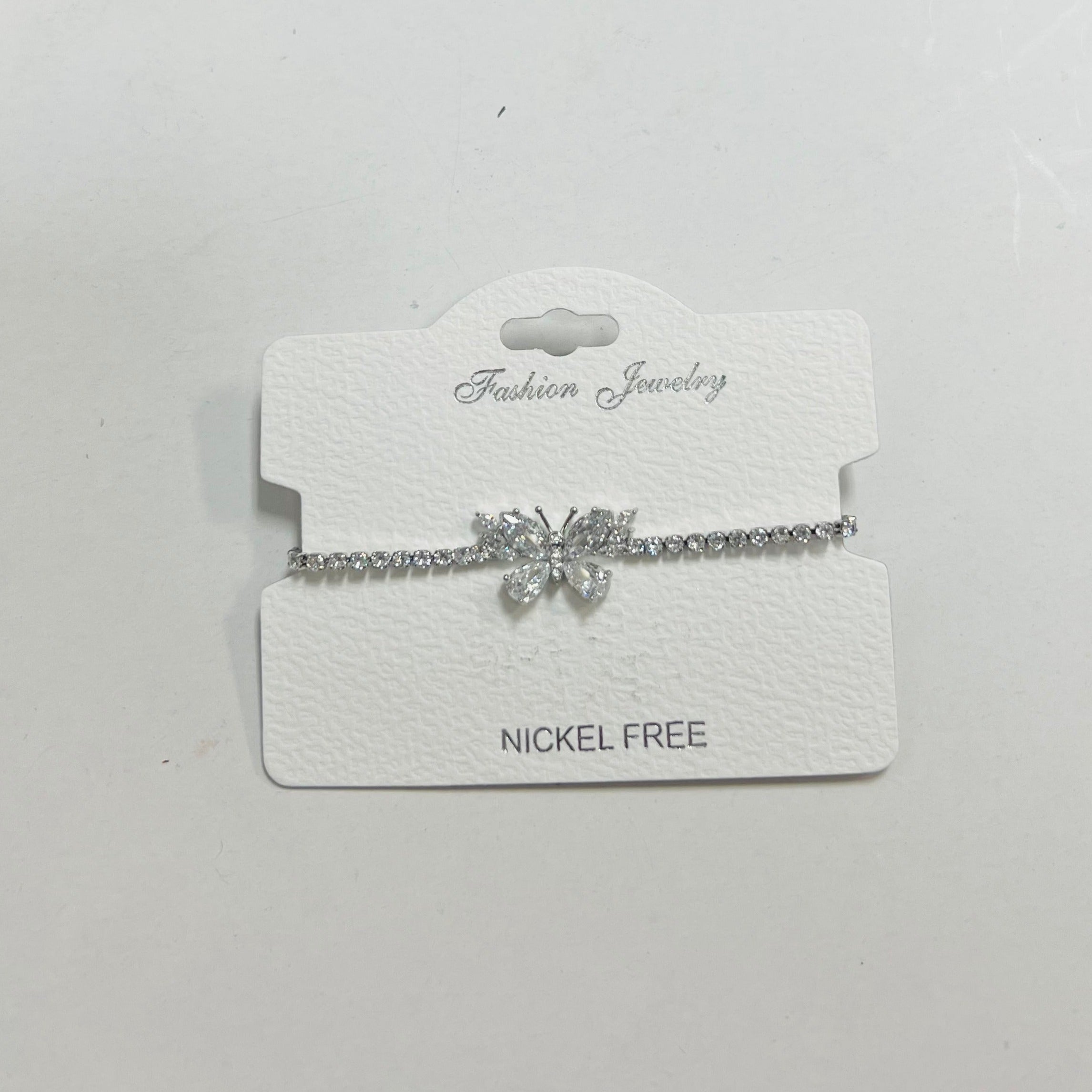 "Butterfly" C.Z Rhodium Plated Crystal adjustable Bracelet