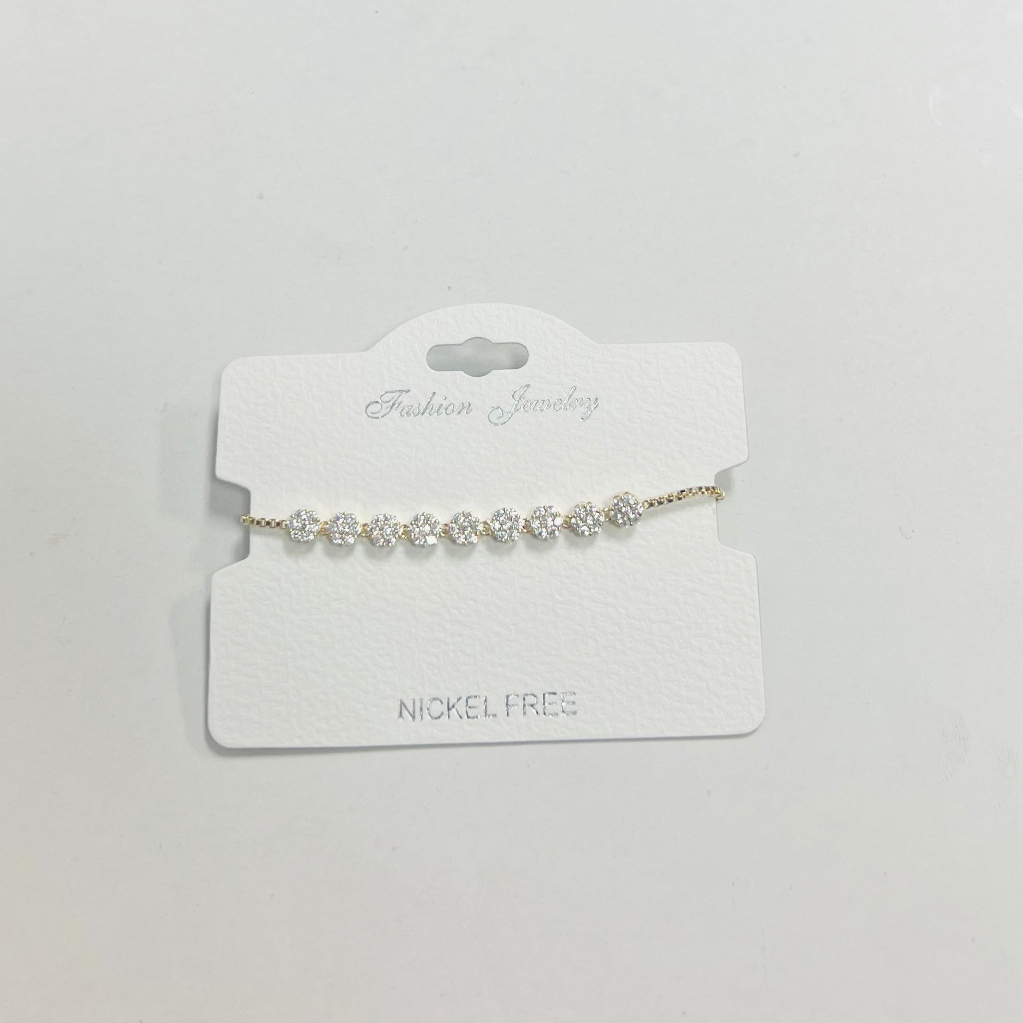 C.Z Rhodium Plated Crystal adjustable Bracelet