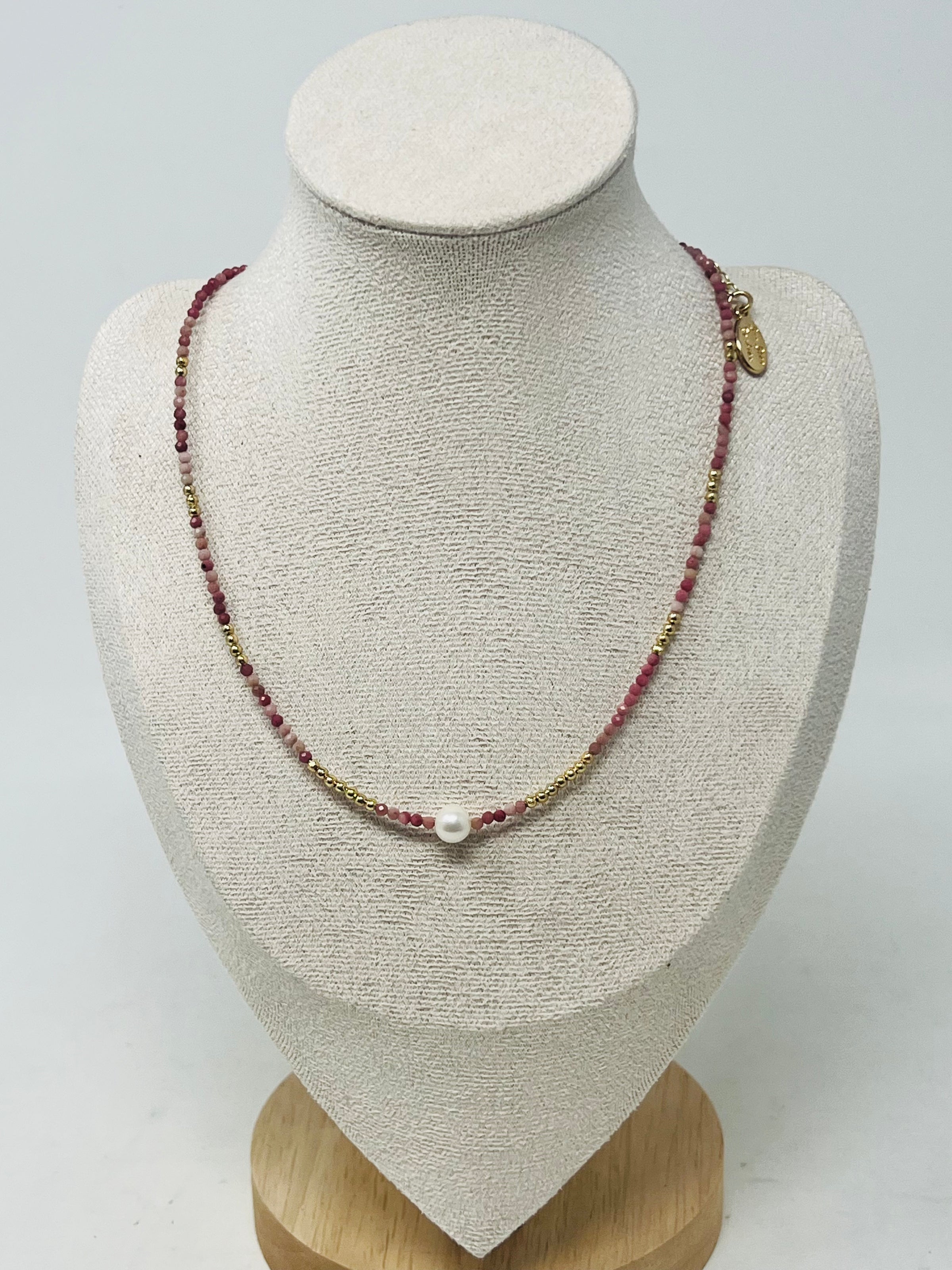 Semi-precious Stone with Miyuki beads & Single Pearl(red)