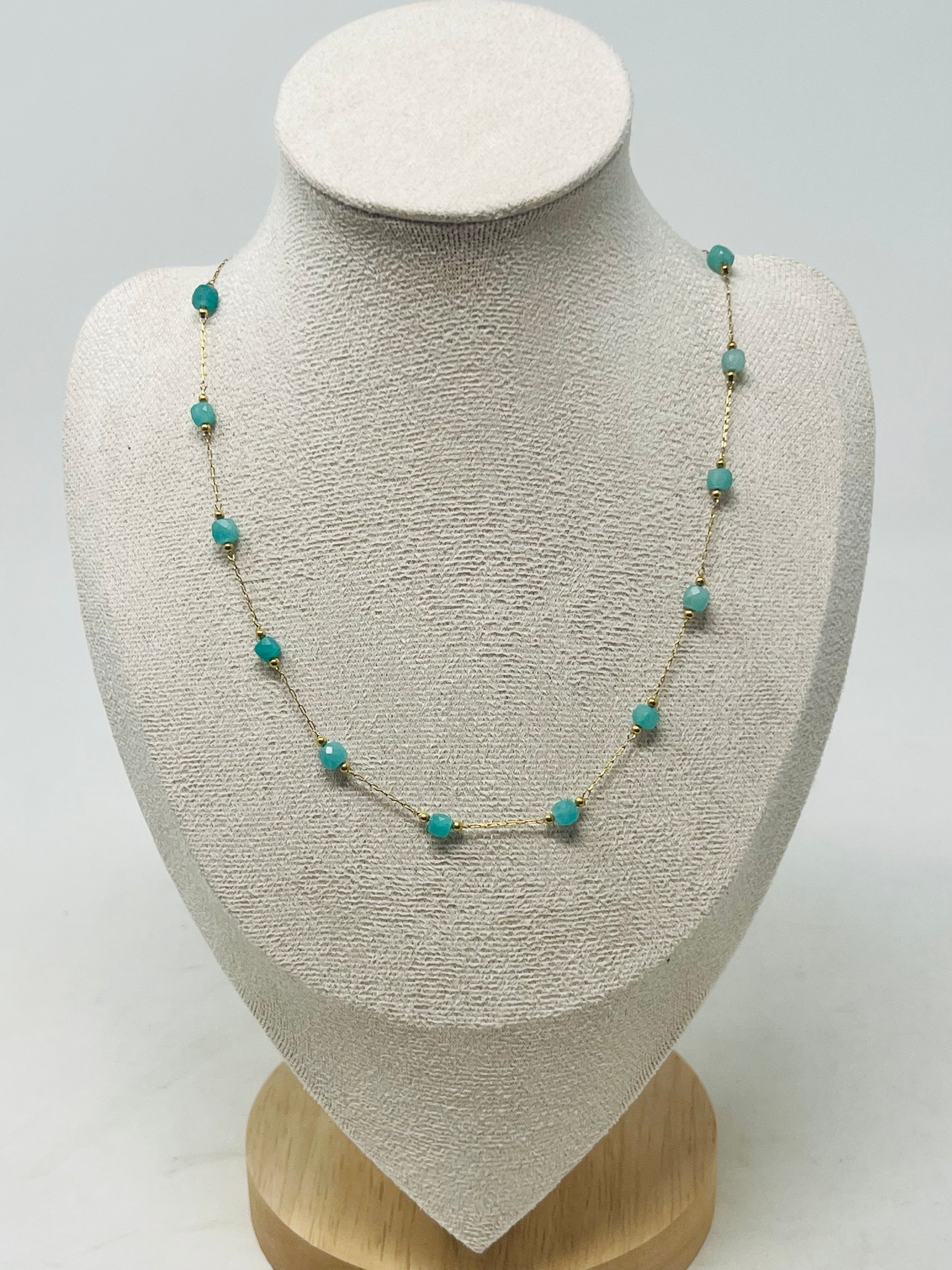 Stainless Steel Gold Chain Necklace with crystal(amazonite)