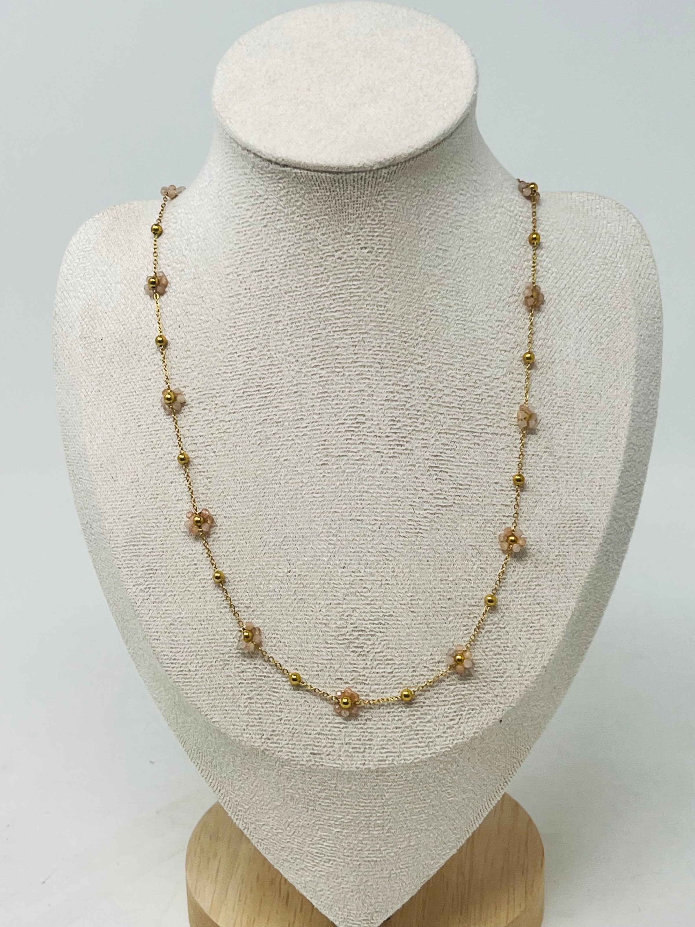 Stainless Steel Gold Chain Necklace with Flower Beads(Sun stone)