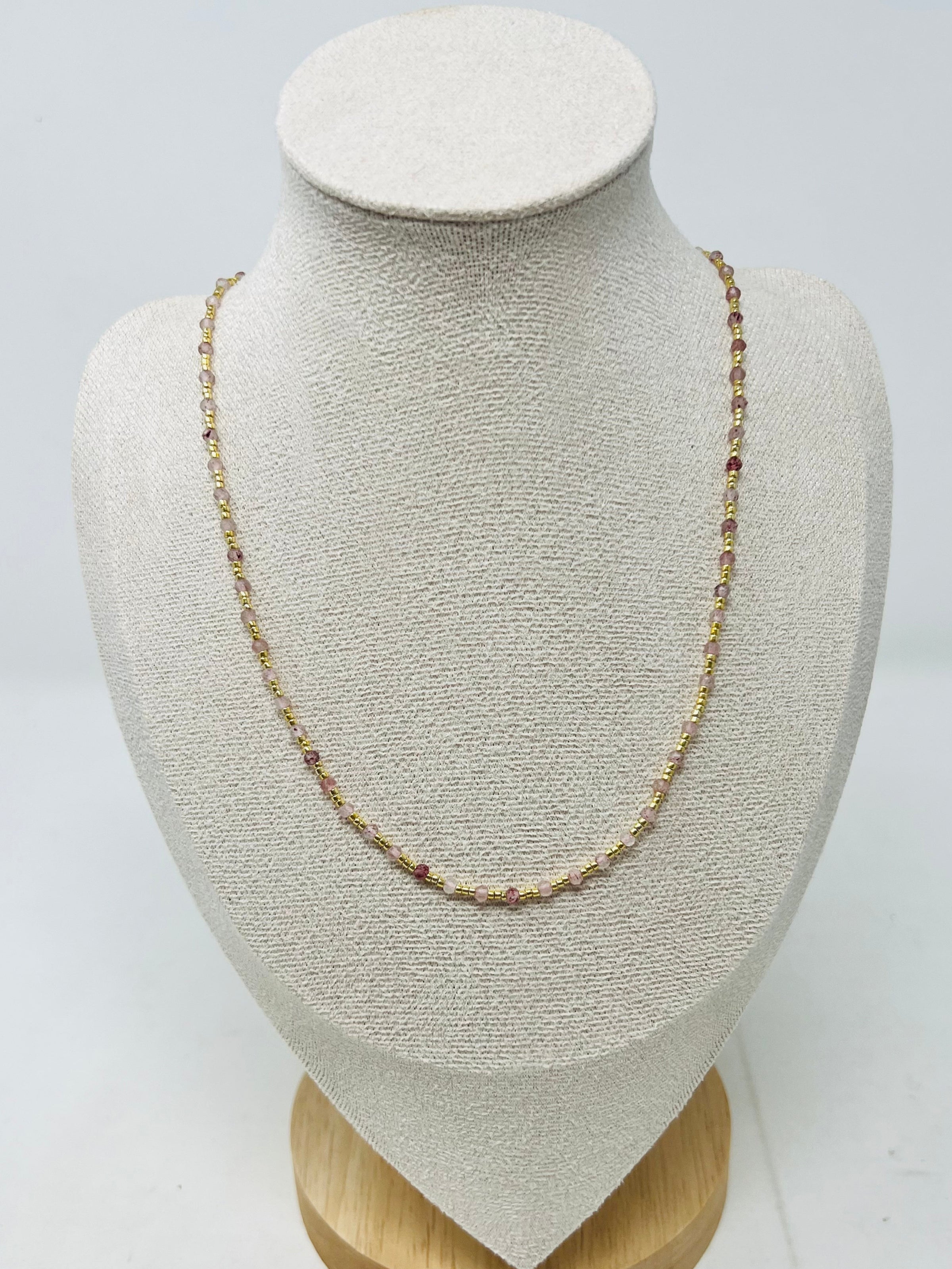 Elegant semi-precious stone necklace with Miyuki beads (rose, blush, a