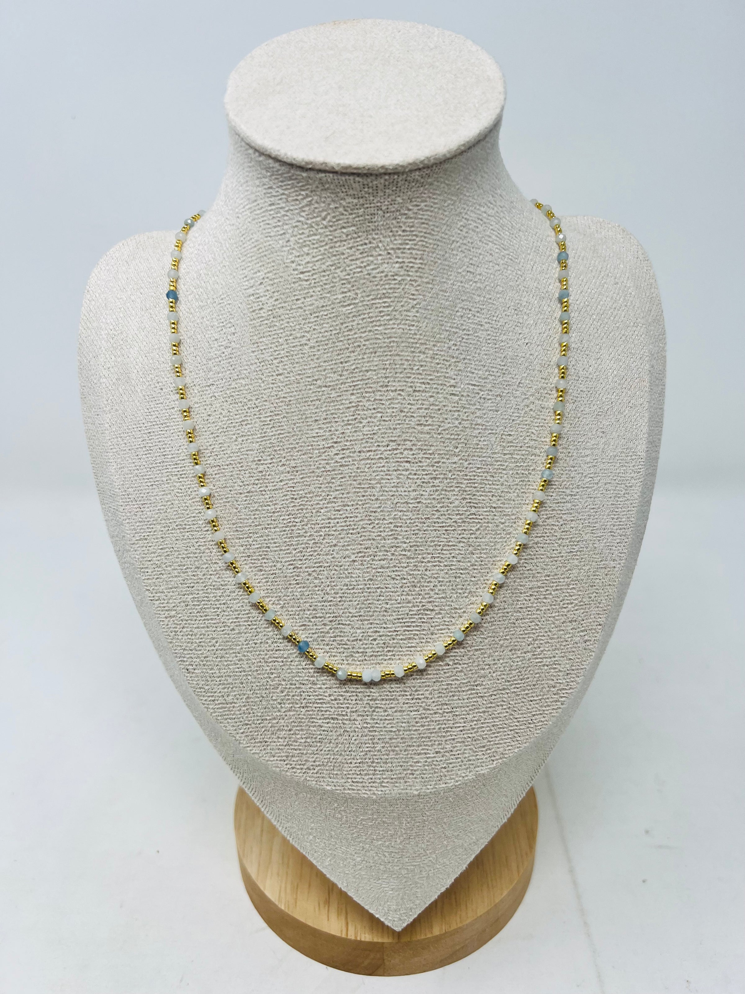 Elegant semi-precious stone necklace with Miyuki beads (soft white, pale blue, and light gray )