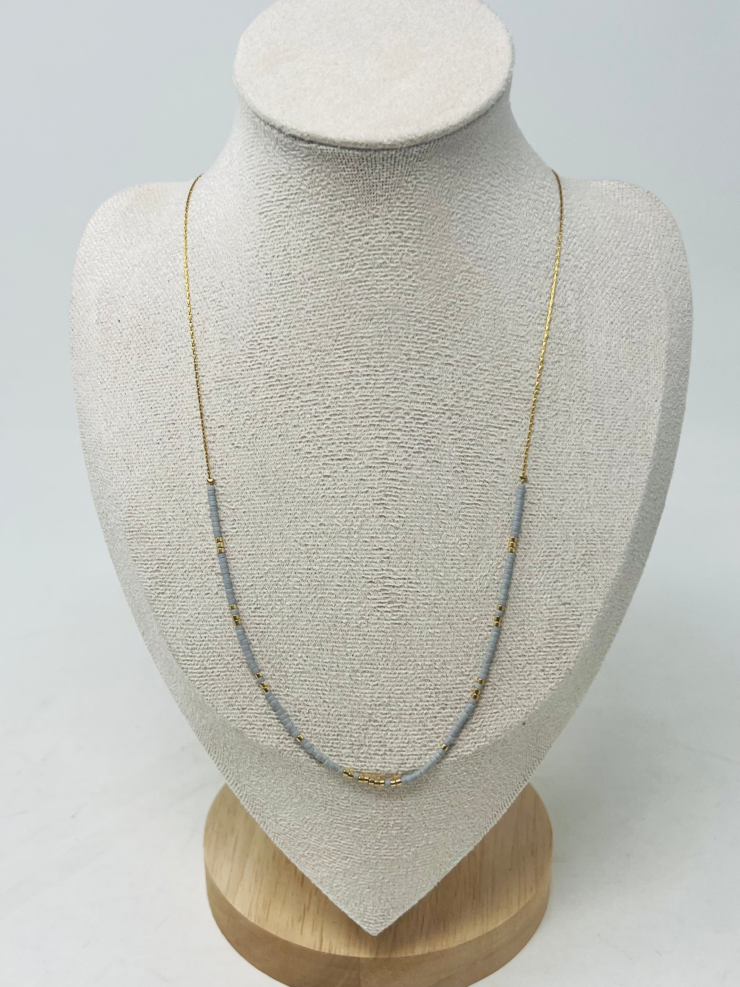 Elegant semi-precious stone necklace with Miyuki beads(light grey)