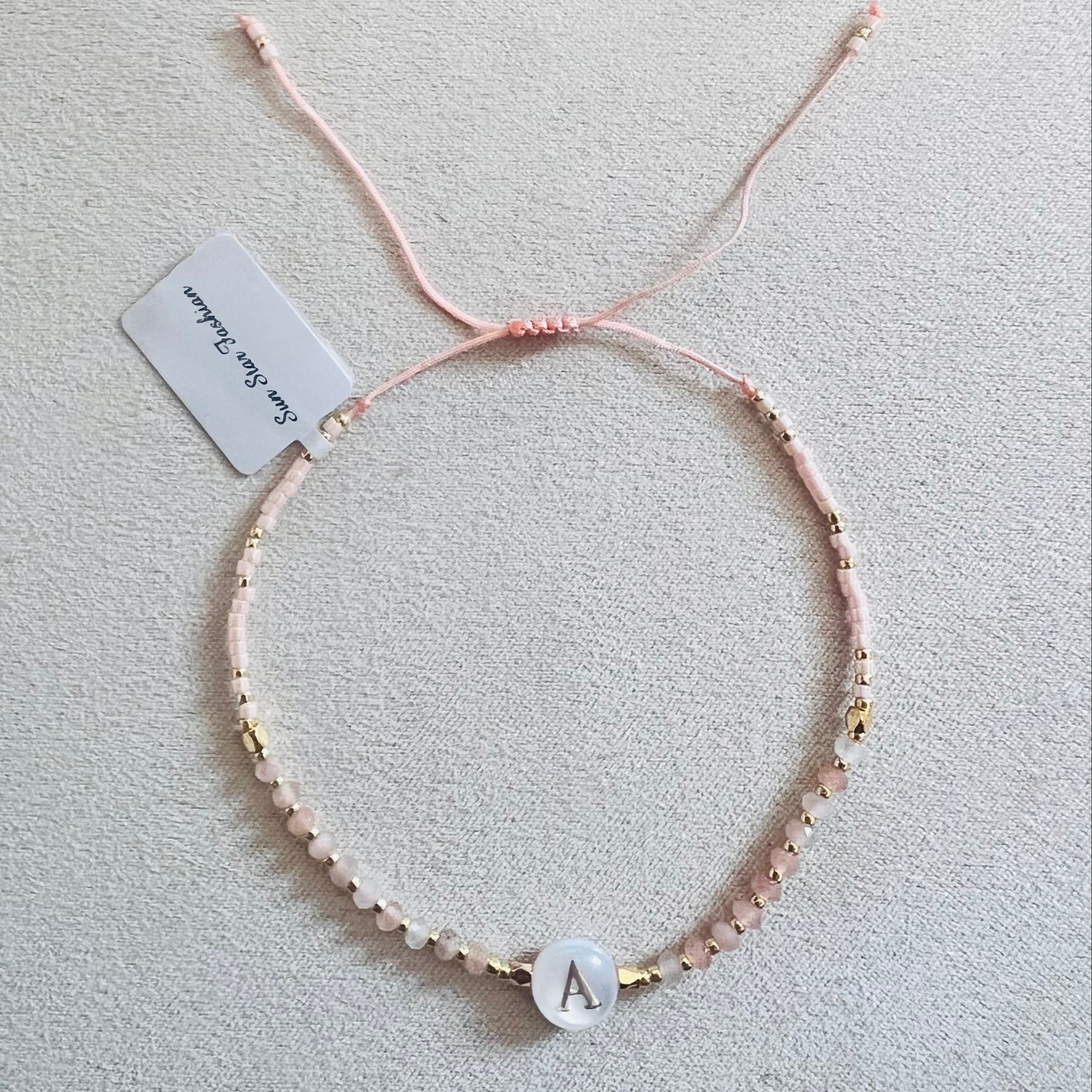 Initial Bracelet (A–Z) Semi-precious stones with Miyuki beads Adjustable cord (sunstone)