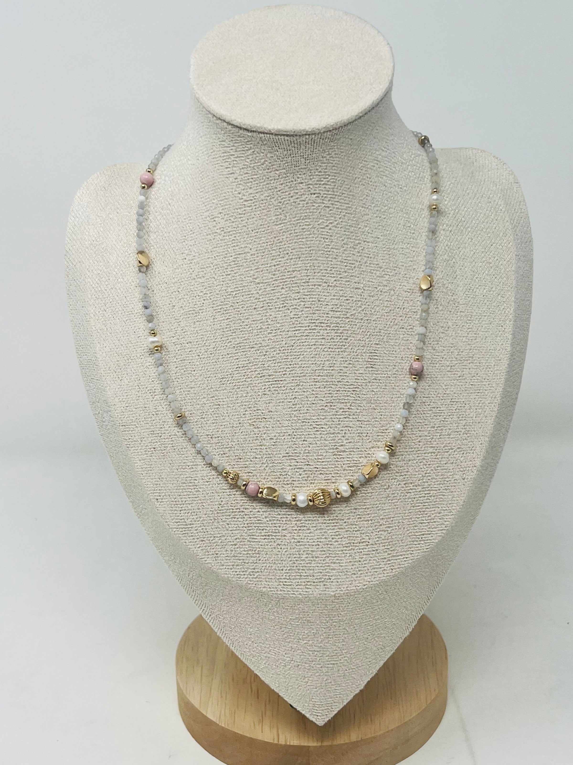 Miyuki Beads, Semi-Precious Stone & Pearl Beaded Necklace (Cream)