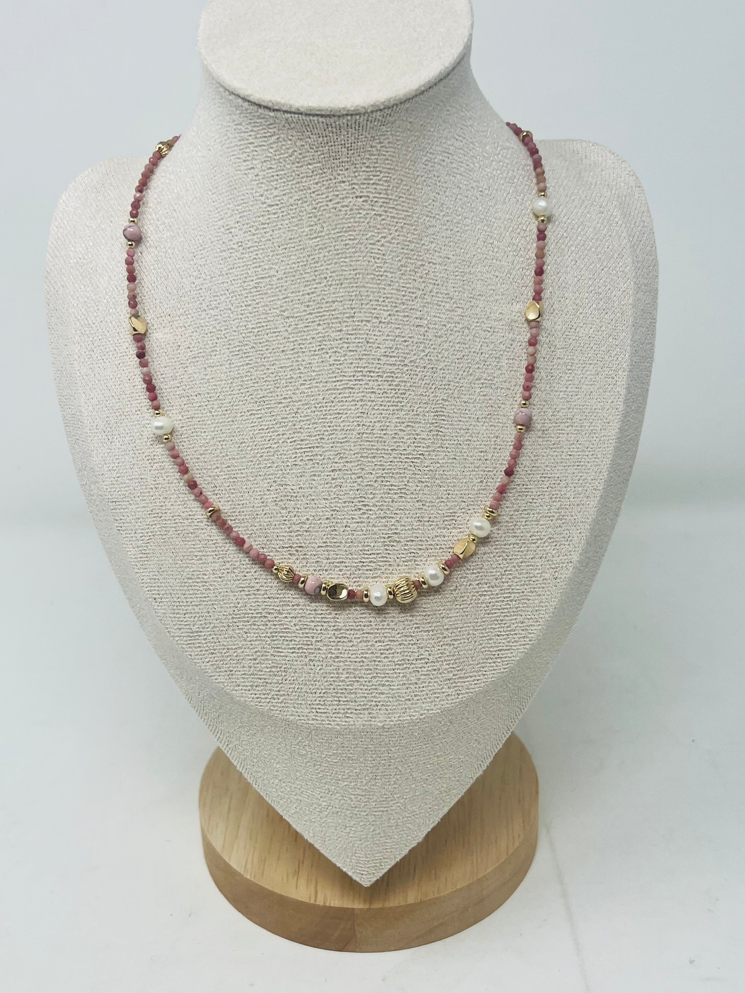 Miyuki Beads, Semi-Precious Stone & Pearl Beaded Necklace (pink and dusty rose)