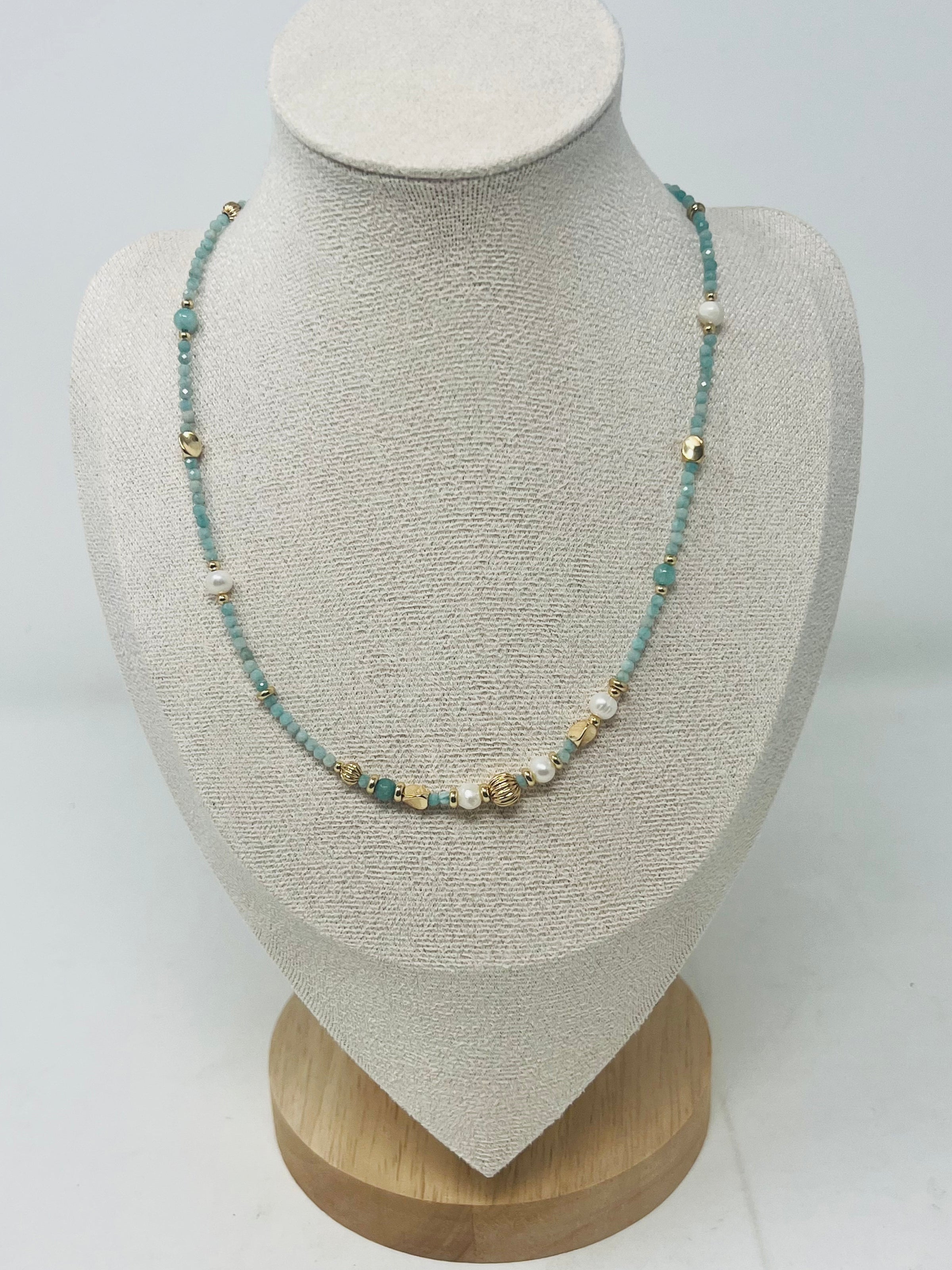 Miyuki Beads, Semi-Precious Stone & Pearl Beaded Necklace(turquoise )