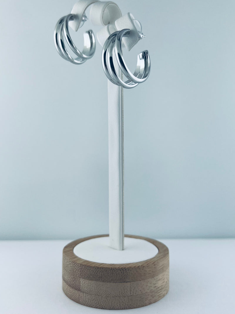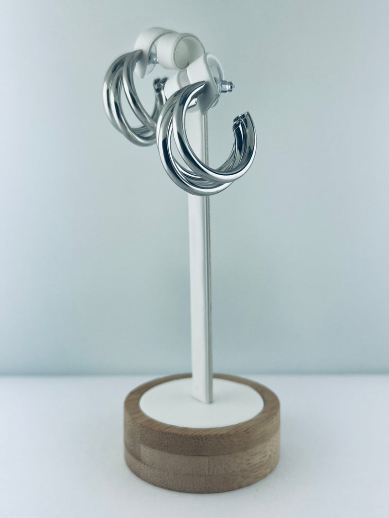 C.Z Rhodium Plated Crystal C Hoop Earring (Three Sizes Choices)