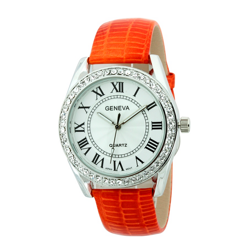 CLASSIC ROUND FACE WATCH WITH ROMAN NUMERALS.GENUINE LEATHER BAND